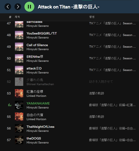 시네마 스태프, 히로유키 사와노, 링크드 호라이즌, 요코 히사카, 심 등등.. 좀 더 있긴한데나는 시네마 스태프, 사와노, 호리즌이 젤 좋더라ㅠ 시네마 스태프 노래는 다 좋아하고.. 그래잎 이스케잎, 백야,,ㅠ(진격거 한정) 링크드 호라이즌은 웅쟝웅쟝해서 좋아ㅠ 진격의 궤적 다 좋아해ㅜ 그리고 사와노도 너무 좋아함 진짜 노래가 하나같이 다 내 취향