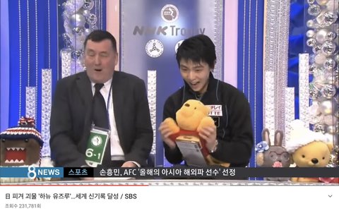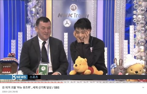 하뉴 점수 개높게 받아서 놀라는데 들고있던 곰돌이 푸도 같이 놀람ㅠㅠㅋㅋㅋㅋ개귀여워