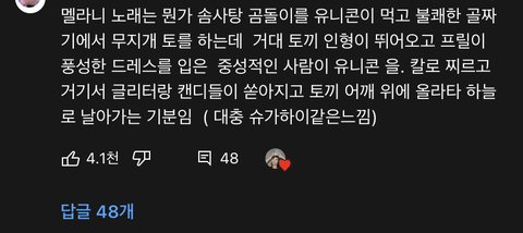 진지충 미안한데 난 저런 식으로 표현하는 거 나쁠 거 없다고 봄 어차피 딩초일 테니까 우리 입장에서 봤을 때 웃긴 건 당연하고ㅋㅋ근데 자기가 느낀 걸 그냥 좋다, 몽환적이다 이런 식으로 뭉뚱그리는 것보다 저렇게 나름대로 자기만의 상상력을 동원해서 최대한 묘사해보려고 하는 게 더 좋아보임. 잼민이일 때부터 남들이랑 똑같은 무난한 표현만 쓸 필요는 없잖아 잼민이일 때 저런 식으로 과장되게, 좋은 말로는 풍부하게 많이 써봐야 크면서 어휘력도 풍부해지는 거임