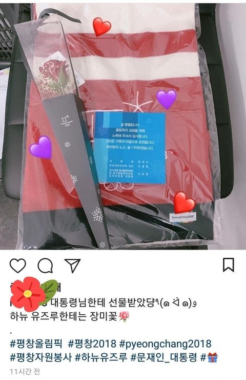 평창에서 자봉들한테 장미꽃 돌린 하뉴
