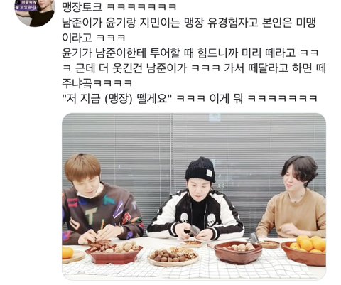나 밖이라 아직 못봤는데 워딩으로만봐도 개웃곀ㅋㅋㅋㅋㅋㅋㅋㅋㅋㅋㅋㅋㅋ진짜 김남준미뉸기 ㅋㅋㅋㅋㅋㅋㅋㅋㅋㅋㅋㅋ