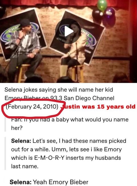 셀레나는 서로 알기전인 저스틴 15살 미성년때부터 라디오나 방송에서