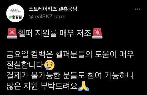 특히 금요일 컴백인데 헬퍼 모집이 잘 안되고 있나봐