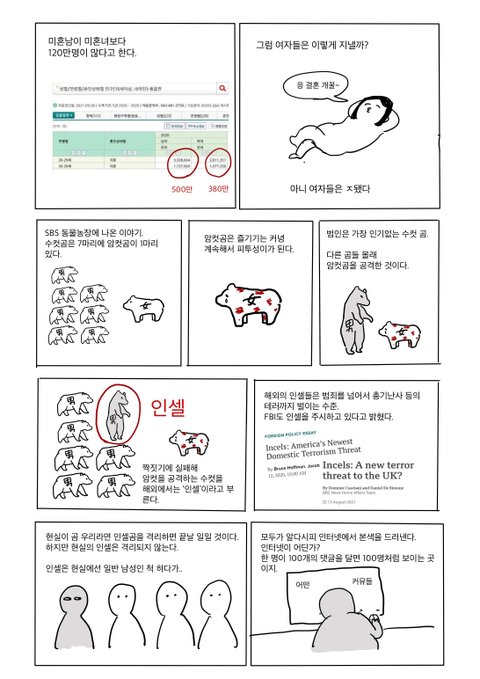 ㅋㅋ 이 나라에서는 너무나 당연한 수순. 난 저 힘쎈 곰? 보고 전에 윤석열 후보가 페이스북에 여가부 폐지 ㅇㅈㄹ해 놓은 거 생각나더라. 여가부 폐지 해봐라 이 나라 여자들 나중엔 다 이나라 뜨지. 쯧. 조국이 나를 안챙기는데 내가 이 나라에 살 이유가 있냐고?