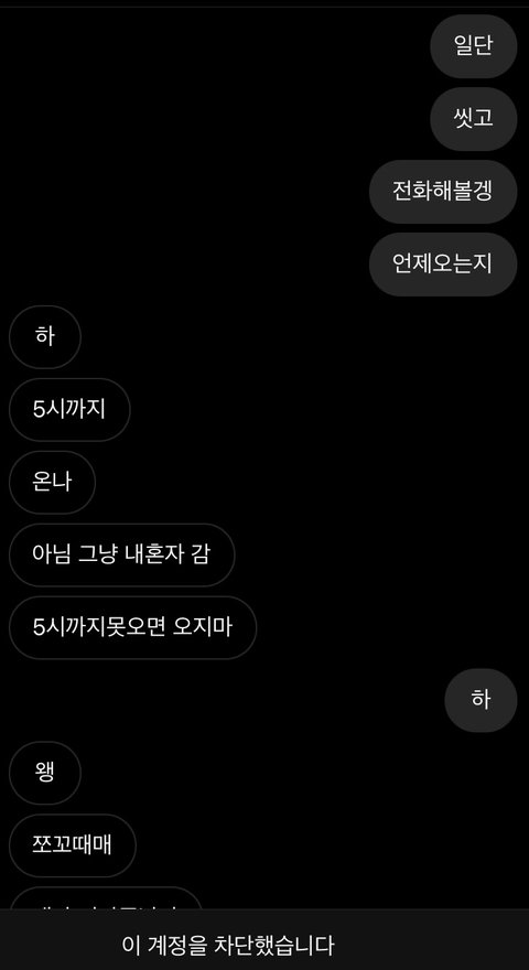 말이지 그래서 혼자 놔두면안되는데 내가 쪼꼬 때문에 나갈수가 없다나갈수가 없다 그래도 내가 씻고 부모님께 연락해보겠다 언제오는지 씻을때동안 부모님이 오실수있으니깐 이렇게 얘기하니깐 하 그냥좀 놔둬라 아몰라 짜증나네 5시까지 온나 5시까지 못오면 오지마 라고 보내네 ㅋㅋ 그래서 내가 진짜 철없네 이래 보내니깐 왜 알아서 하슈 이래 보내길래 그냥 너 혼자가서 사라 이래보내니깐 ㅇ