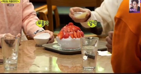 딸빙 나왔는데 유재석이랑 김용만은 연유 하나로 싸우고