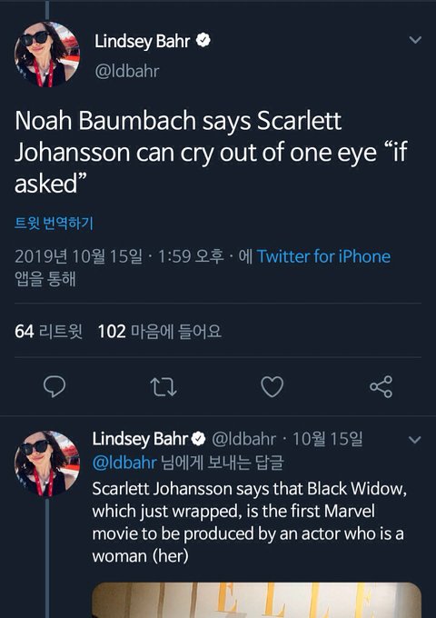 최근에 "스칼렛 요한슨은 한쪽 눈으로만 울어보라고 시키면