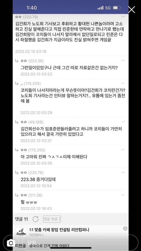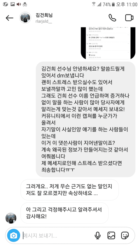 결국 한 사람이 해당 여자선수한테 디엠보냈고, 전혀 근거없는 내용이라고 밝힘