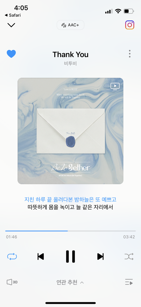 땡큐가 진리인것같아 뭔가 똥똥거리는 느낌(?) + 겁나 따뜻감동적인 가사 >> 새벽에 감성폭발
