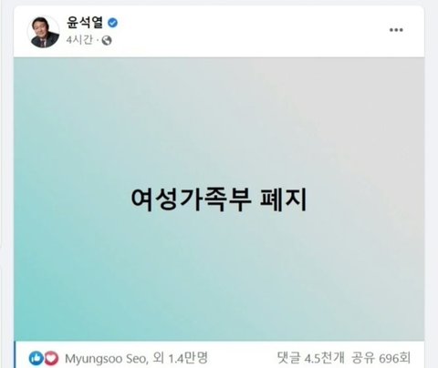 사실 윤석열의 여성가족부 폐지 쇼는 시기상 이재명의 닷페이스 출연 결정에 대한 대응이었다. 김건희 허위이력 문제와 이재명 "삼프로" 유튜브 흥행 등으로 윤석열에서 이탈해 이재명으로 흐른 2030대 남성표가 닷페이스 출연으로 흔들릴 수 있다는 분석이 나오자, 그 표를 결집시키겠다고 바로 대응한 것이 여성가족부 폐지 7글자였다. 개편까지는 다들 그러려니해도 폐지는 너무 갑작스럽다보니 왜 폐지를 하는건지, 후속 대처는 어떻게 할건지 여러 질문이 쏟아졌지만 국민의힘 관계자들은 제대로 답하기는커녕 응답하는 사람마다 대답이 다 달랐다.