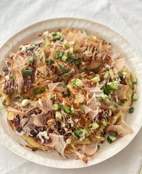 오꼬노미야끼 반죽에는 원래 밀가루 계란 말고도 갈은 마가 들어가요. 그래서 속이 촉촉한데 덜익은 맛이 안나는 거랍니다.