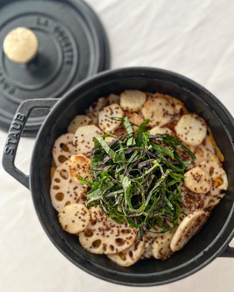 무, 마, 연근 넣고 솥밥 지으면 포만감 가득 탄수화물은 적게 먹을 수 있어요. 여기에 킥은 깻잎, 들기름, 통들깨인데요 - 들기름에 연근과 마를 볶아 올려 밥을 지어주고 마지막에 깻잎을 올려주면 향긋하고 통들깨는 톡톡터져 아주 맛있는 밥이 됩니다. 양념간장 필요 없어요 -