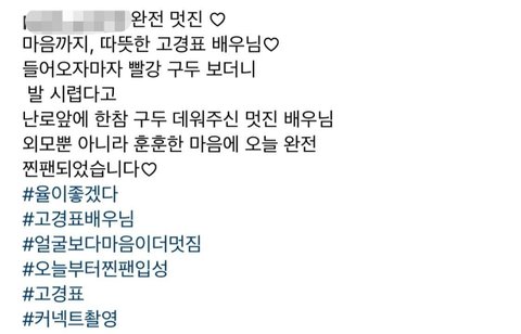 추울까봐 아역배우 구두를 한참 난로에 데워준 배우는 고경표