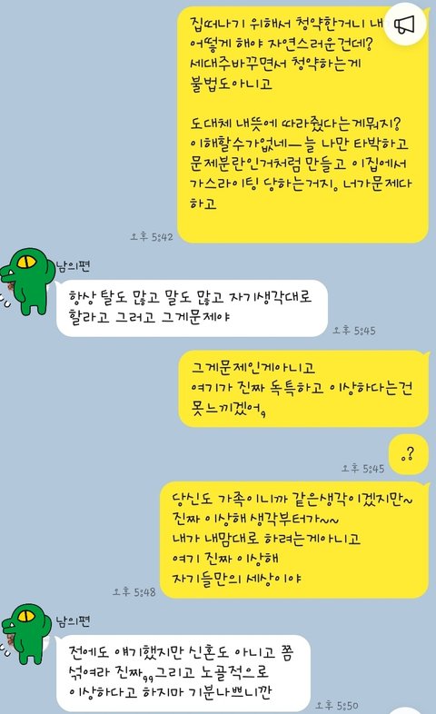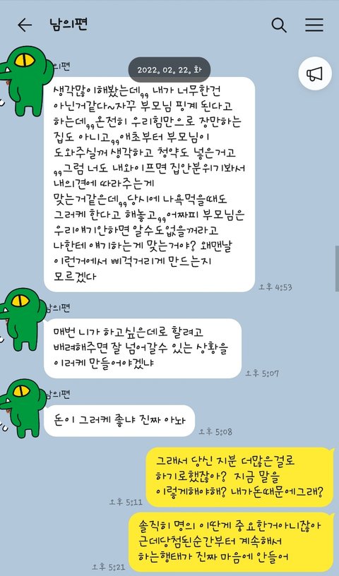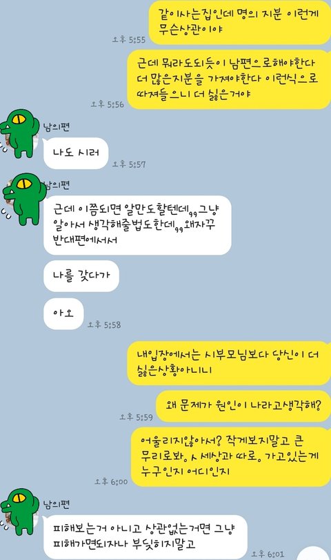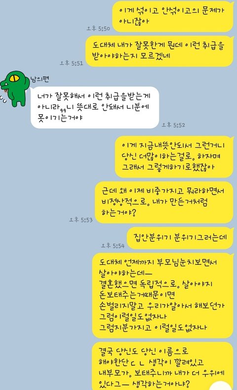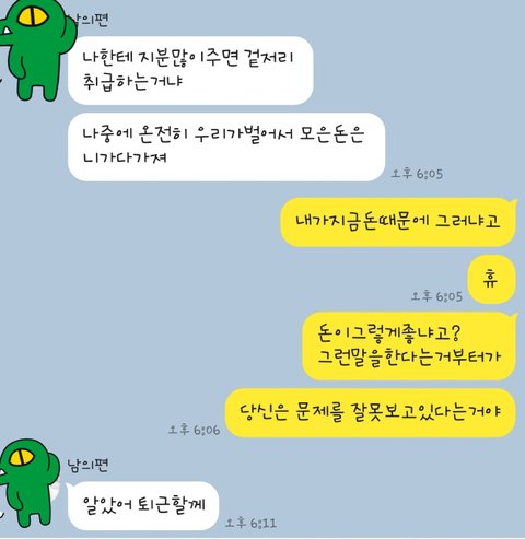 남편이랑 추가적으로 나눈 대화 보니 더 말할 가치가 없어요