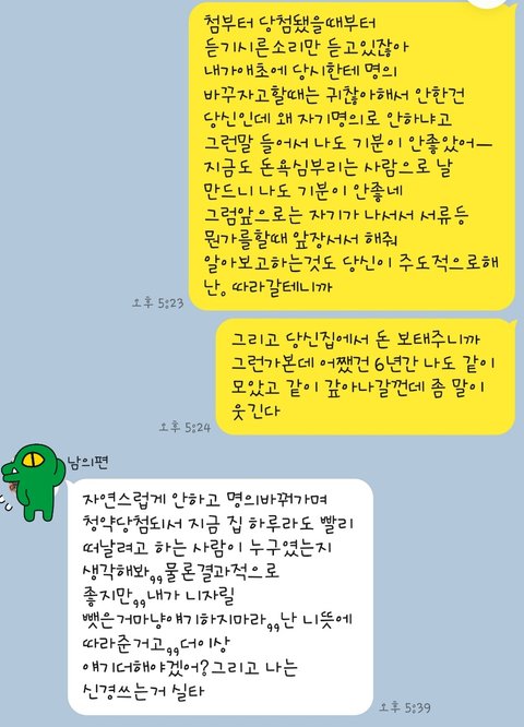 같이 기뻐하고 행복해야할 일인데,.. 당첨된 날부터 지금까지 왜 이렇게 기분이 더러울까요