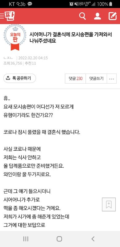 [원본지킴] 시어머니가 결혼식에 모시송편가져와서 나눠줘서 짜증난 여자