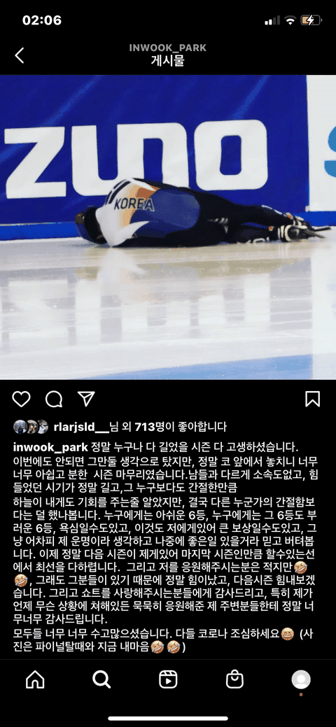 쇼트트랙 짬짜미 피해선수 인스타