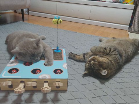 캣잎을 뿌려줘서 그런가 둘다 자네요~여우 손빠진거 너무 귀엽네요