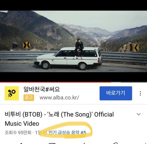 인기 급상승 음악이랑 인기급상승동영상이랑 같은거야?