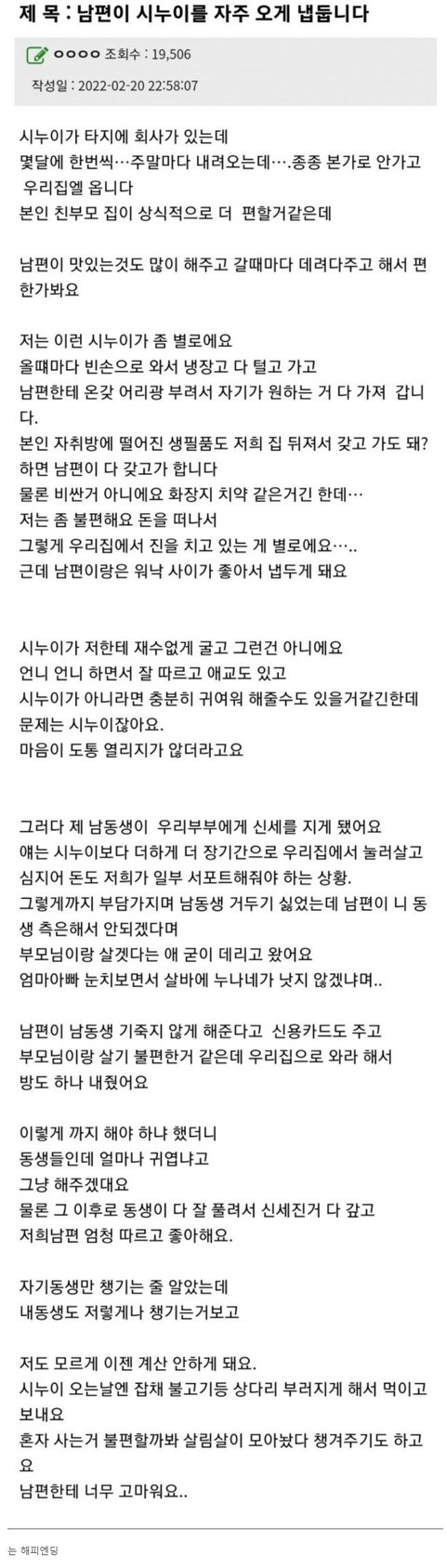 17회 남편이 시누이를 자주 오게 냅둡니다