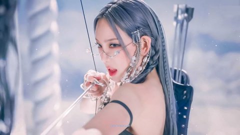 (MV에서 아르테미스를 상징하는 사슴 장식과 큐빅눈물)