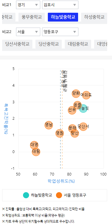 아래는 학업성취도 평가 및 특목고 진학률을 서울 영등포구와 비교해봤습니다.
