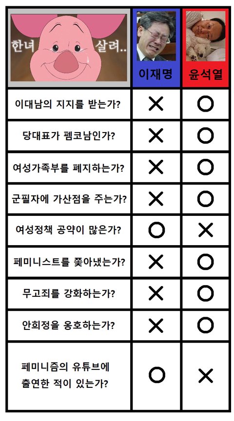 아 이제 당선되려면 도태남들 표심을 잡아야되는구나 매번 분산되고 의미 불문명한 여자들 표는 쓸모 없구나