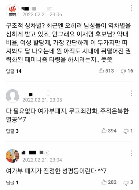 윤도 이수정 영입해서 여자표 잡으려고 했다가 반응 없으니까 바로 팽하고 펨베 신남성연대랑 손잡고 여가부폐지 n번방 방지법 폐지 성폭력 무고죄 강화 군필 청약 가산점 주120시간 노동 최저임금 폐지 등등 걍 대놓고 여자 약자 죽이기 공약 내세우는 노선 탐