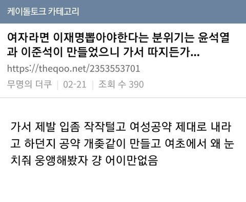 도태남들이 아묻따 여자죽이기로 윤을 지지한다면