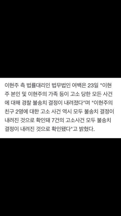이어 "이현주의 친구 2명에 대한 고소사건 역시 모두 불송치 결정이 내려진 것으로 확인되어 7건의 고소사건 모두 불송치 결정이 내려진 것으로 확인됐다"고 밝혔다.