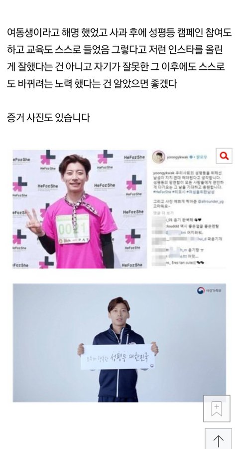 저 피해자가 주작한거고 곽윤기 말대로 옆사람 여동생이었으면 곽윤기 욕먹을 이유 없는거 아니냐ㅋㅋ여동생 찍어도 잘못된 행동인거 자기도 알았으니까 사과문 올리고 성관련 행사 참여하고 했다며