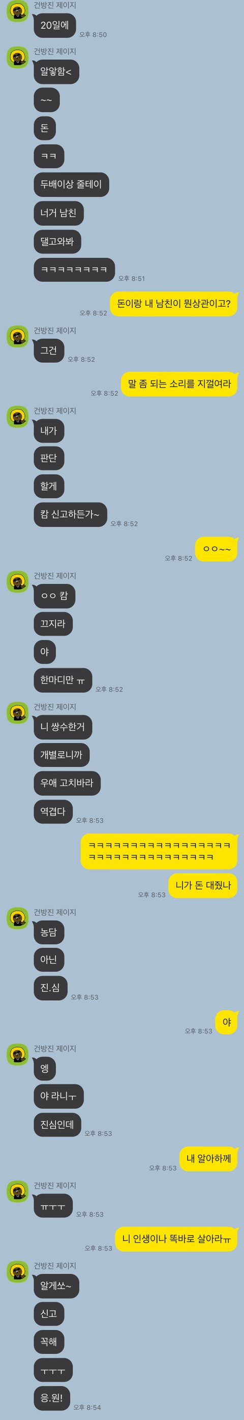 혹시나 이 글을 본다면 자기 분수에 맞게 남한테 돈 빌리지 말고 살았으면 좋겠고, 다른 분들은 세상에 이런 개념도 양심도 없는 사람이 있으니 돈거래는 꼭 조심하세요. 길지만 읽어주셔서 감사합니다
