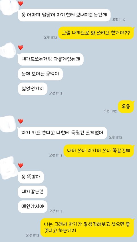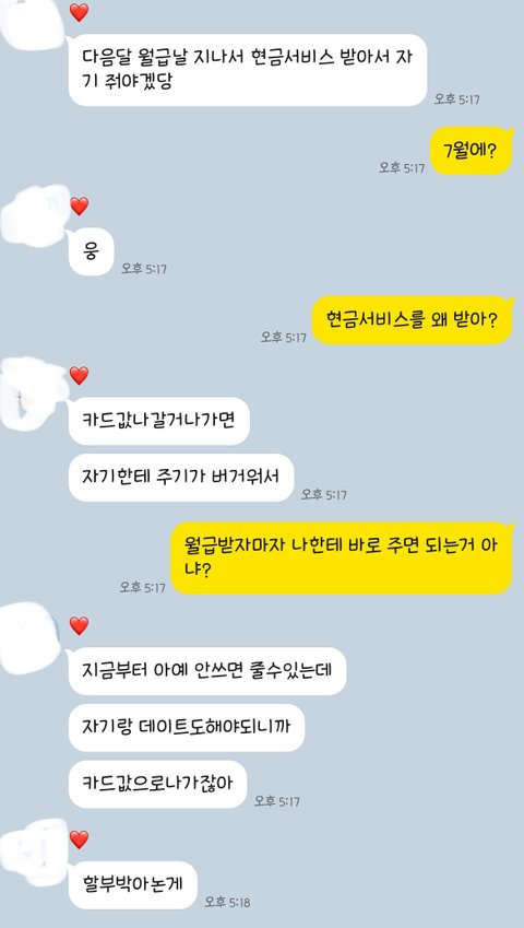 작년 3월인가 4월에 구찌 운동화랑 클러치 사고 싶다고 총 251만원 내 신용카드로 긁음그 ㅅㄲ 신용카드는 한도도 많이 쌓여있고 그때까지 쌓여있는 카드값에 더 얹히기 싫다는 개소리시전하면서 빌림어차피 내꺼 빌려서 나한테 갚는 돈이나 지 카드로 써서 갚는거나 똑같은데 그냥 지 맘편하게 이자없이 돈 갚으려고 지랄한거임어느 정도냐면 현금서비스를 받아서 나한테 갚을 정도로 카드값이 조카 쌓인거임더 빡치는건 3월에 카드 써놓고 4-5월까지 1도 안 갚음ㅋㅋㅋㅋㅋㅋ6월에 내가 급하게 돈 필요하다고 구라치면서 10만원 받아냄(이것도 현금서비스로)근데 10만원 주는 것도 조카 기분 나빠하는게 보임ㅋㅋㅋㅋ여유있을 때 줘도 된다고 그랬다면서 내 탓 조카 함(일종의 가스라이팅 당함)근데 6월 말에 헤어졌는데 헤어지면서 내 돈은 갚겠다고(당연한소릴..?) 당당하게 얘기했는데 두 달 동안 돈 안준적도 있고 두 달에 한번꼴로 입금함ㅋㅋㅋㅋ