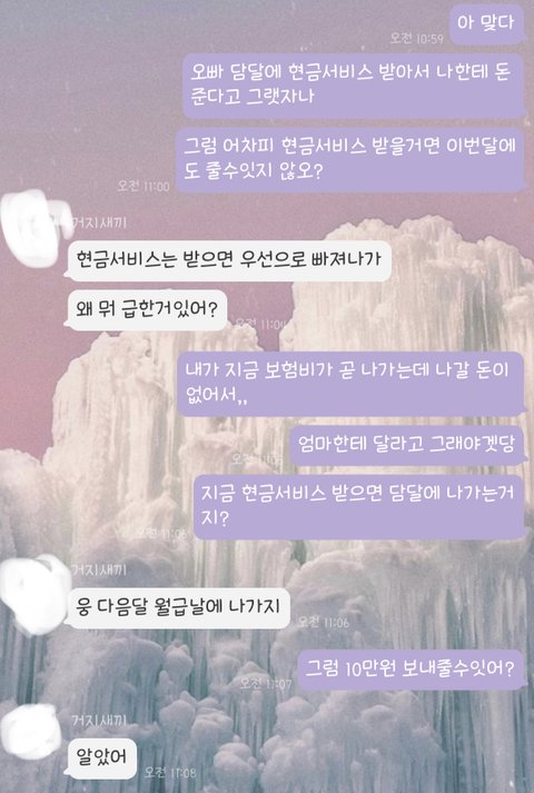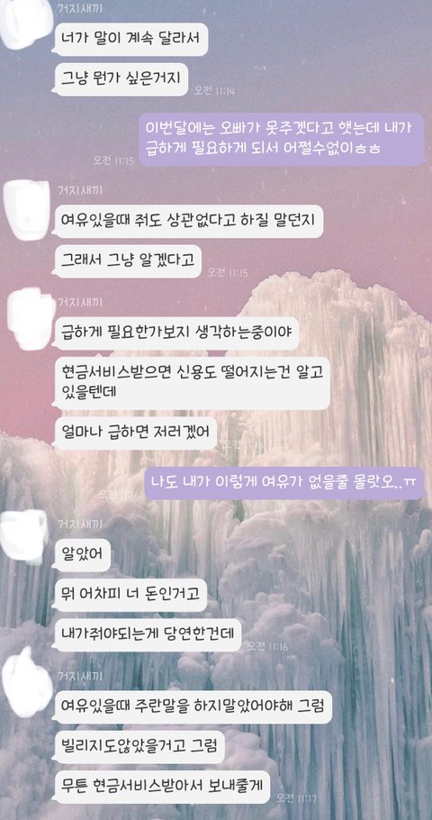 여기까지도 ㅈㄴ 열받는데 헤어지고 나서는 얼마나 더 열받겠냐고.......헤어지고 나서 문자한 내용은 다음편에 쓸게요 진짜 더 가관이고 황당하니까돈 빌려준 나도 ㅄ인거 알고 호구인거 아는데 스트레스 받아서 도저히 그냥은 못 있겠음다음편에 쓰는건 진짜 인간쓰레기인거 보여주는 문자내용 오픈할게요