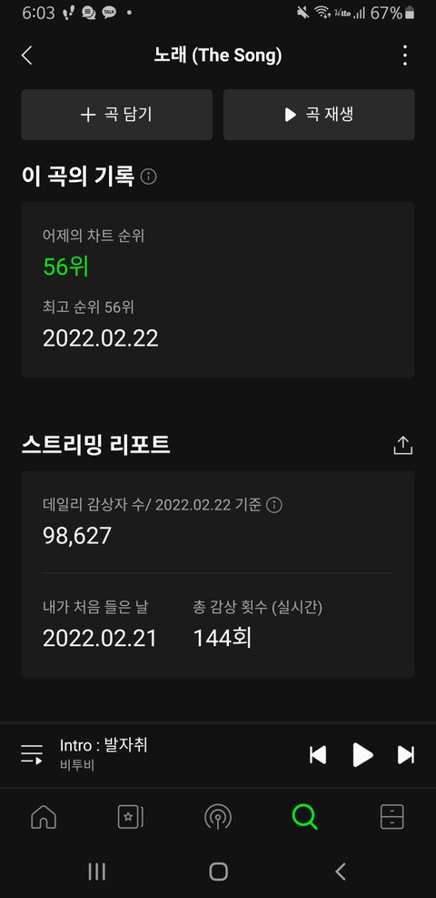 스밍은 공기계로 돌리고 있어서 스밍 횟수로 인증!