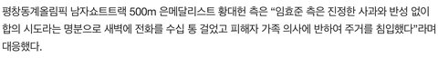 린샤오쥔(임효준)은 황대헌 선수를 조롱하지 않았고, 꾸준히 사과하려 했으며 황대헌 선수에게 사과하러 찾아갔을 때 주거침입으로 신고를 하겠다는 협박을 받았는가? O