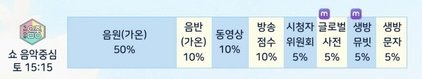 물론 뮤비 스밍도 중요하고 다 중요한데 음원이 50이야