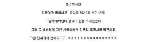 방탄 정국한테 교과서 준 팬 되게 착하다