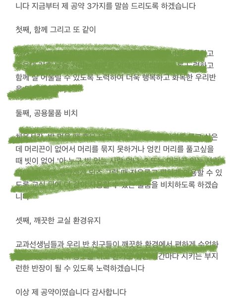 이번에 새학년 올라가면서 반장선거 나가보려고 하는데 어떻게 해야할지 잘 모르겠어ㅠㅠ 내가 살짝 낯을 가리기는하는데 그래도 친해지면 금방 친해지는 스타일이야! 딱히 나쁜 소문도 난 적 없고 작년에는 부반장한 적 있긴해! 지금 학교 동아리활동도 열심히하고 그냥 이럭저럭 생활했어 공약도 몇개 적긴 했는데 뭘 더 적으면 좋을까…?ㅠㅠ