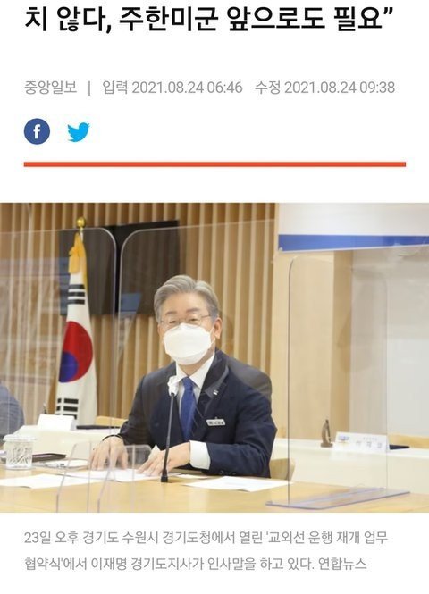 이재명은 주한미군 철수하면 안된다고 말했어요