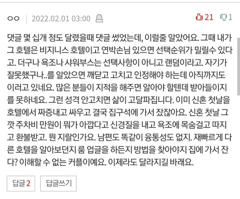 난 따끈따끈한 새신부이고 욕조룸 예약했다구욧!!!!!!! 근데 욕조는 없고 호텔직원은 불친절하고 신혼첫날밤 호텔 요기오때로 공구한건데 망쳤네여!!!! 이럴거면 난 자가있는 뇨자라 내집에서 잤지!