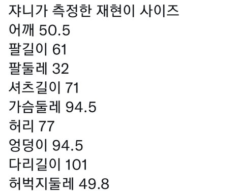 오늘뜬 자컨에서 신체 사이즈 공개함