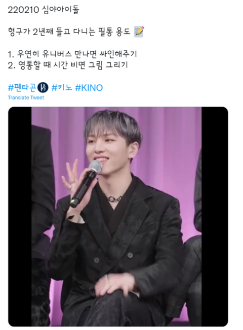 펜타곤 키노가 2년 째 필통을 들고 다니는 이유