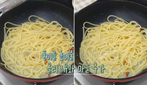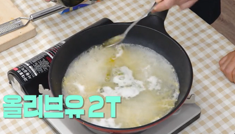 불을 끄고 올리브유 1T, 마늘 1개 갈아서 넣기