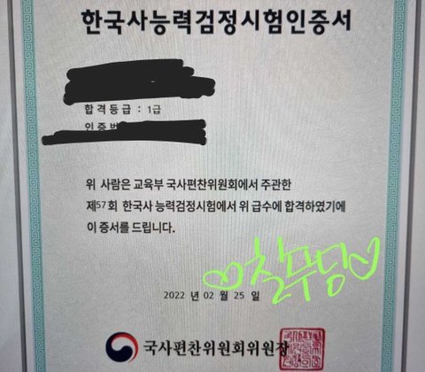 ㅅㄷ 얘들앙 나 한능검 땄당~!!