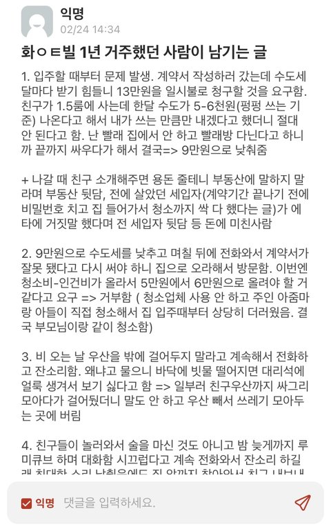 1년간 자취하면서 스트레스도 많이 받고 사건도 많았어요. 방을 빼면서 겪은 일 때문에 저처럼 같은 건물에 방 빼면서 피해 보신 분들이 있나 알아보니 저 말고도 이런 일을 겪었던 분들이 매년 있었더라고요.