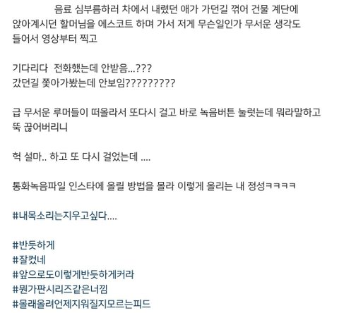 상연이랑 통화 녹음 영상인데 상연이 어떤 모르는 할머니 분께서 배고프다고 말해서 밥 사드렸다는 통화 내용인거임