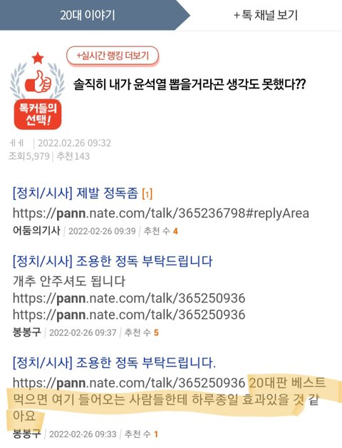 "판은 우리가 탈환할수 있는 유일한 여초"