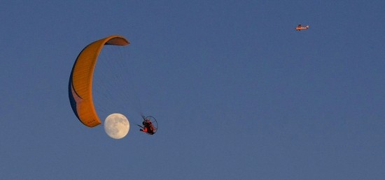 행글라이더의 모습이 경비행기와 보름달과 너무나 잘 어울리는