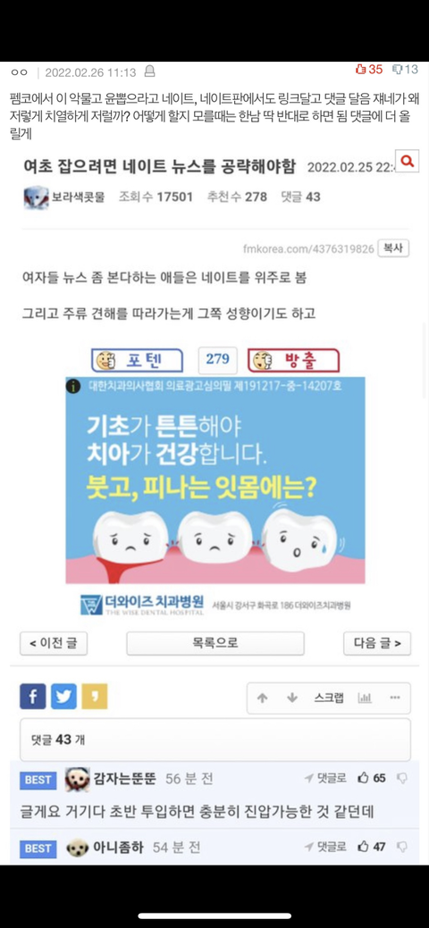 추하다 펨코남들아